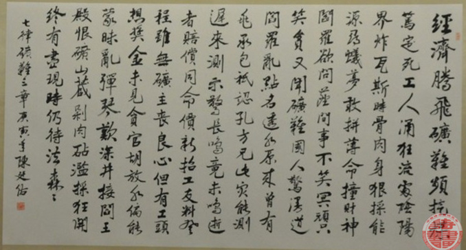 陈廷佑 1954年出生,河北省深州市人。1972年参军,1985年转业到国务院参事室、中央文史研究馆。现任国务院参事室、中央文史研究馆办公室副主任、中华诗词学会常务理事、中国作家协会会员、中国书法家协会会员、中国诗书画研究会常务理事、中国艺术家协会常务理事。